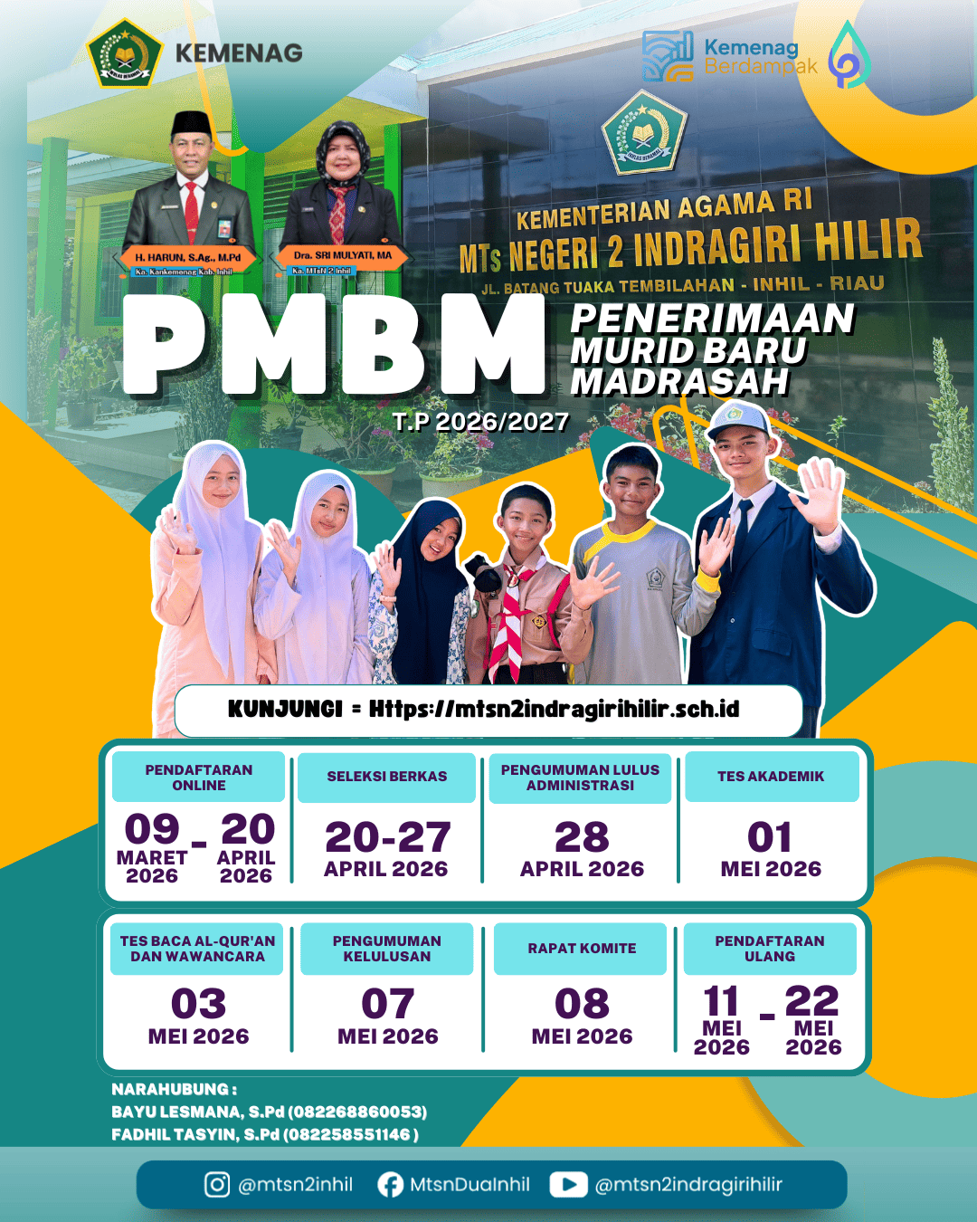 Berdasarkan KMA RI No. 669 Tahun 2016, nama MTsN Tembilahan resmi berubah menjadi MTsN 2 Indragiri Hilir, yang terus berkembang sebagai madrasah berprestasi dan berdaya saing.